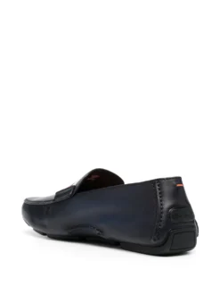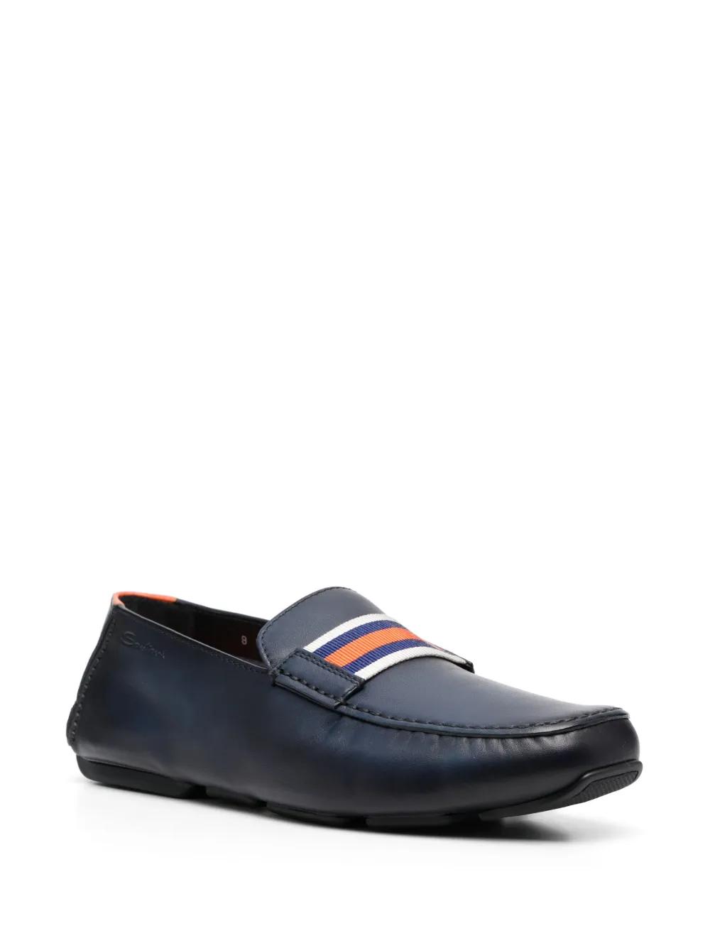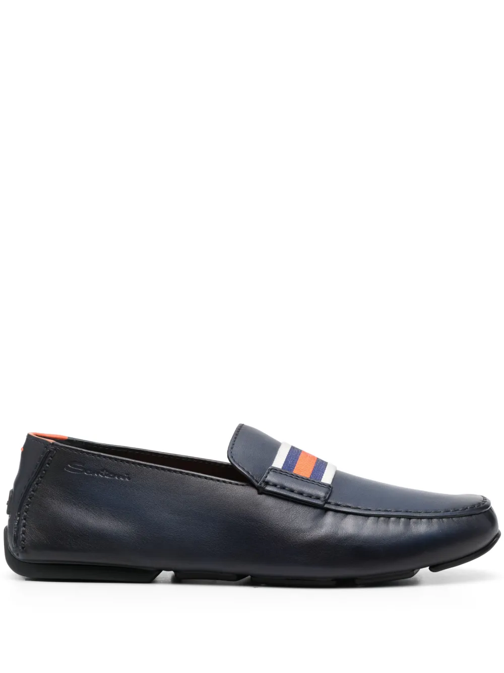 Imagined in a navy blue hue, these SANTONI loafers are characterised by a premium leather upper. The pair is complete with a striped band and innovative raised rubber blocks on the sole for optimal grip.