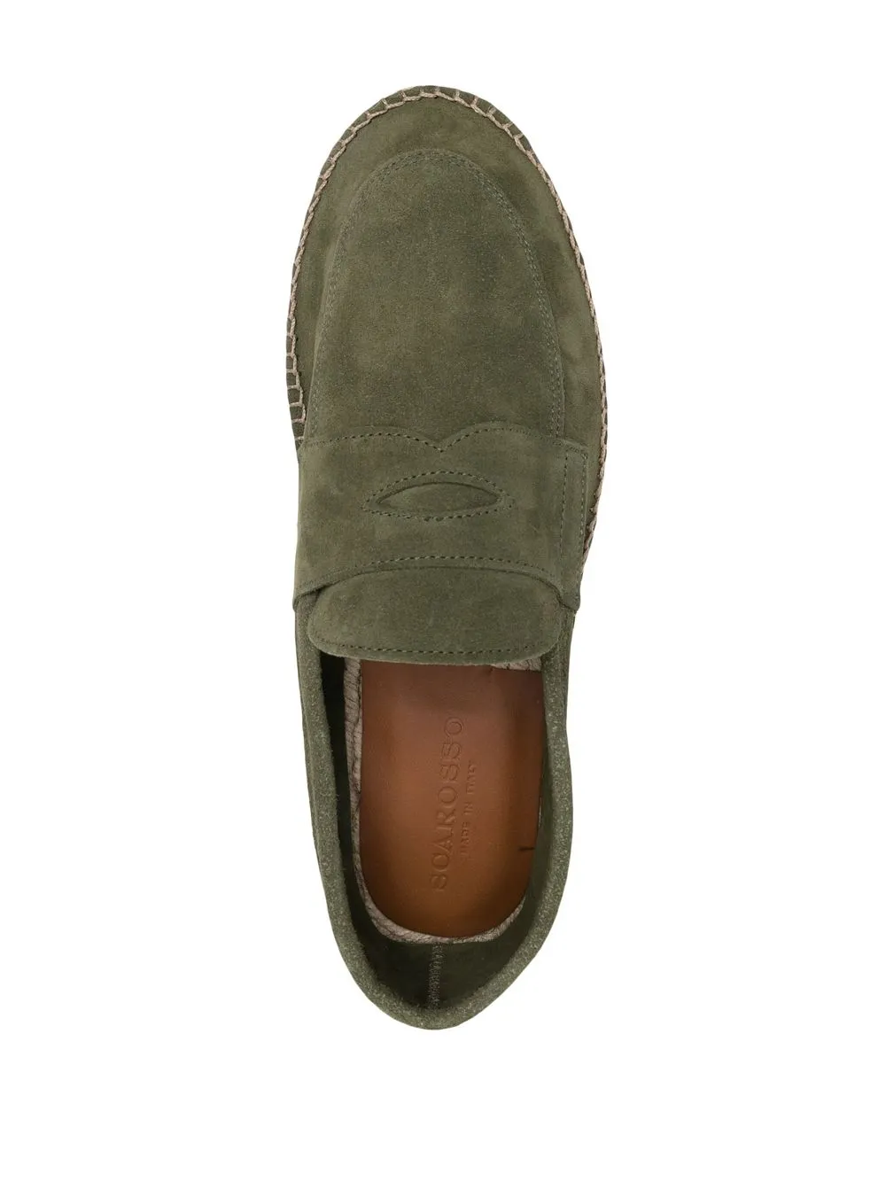 Fabricated from asparagus green suede, Scarosso’s expertly crafted Diego espadrilles make for a signature silhouette during warmer months. Fashioned in Italy, they feature a contemporary blend of a penny loafer upper and an espadrille base.