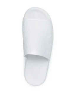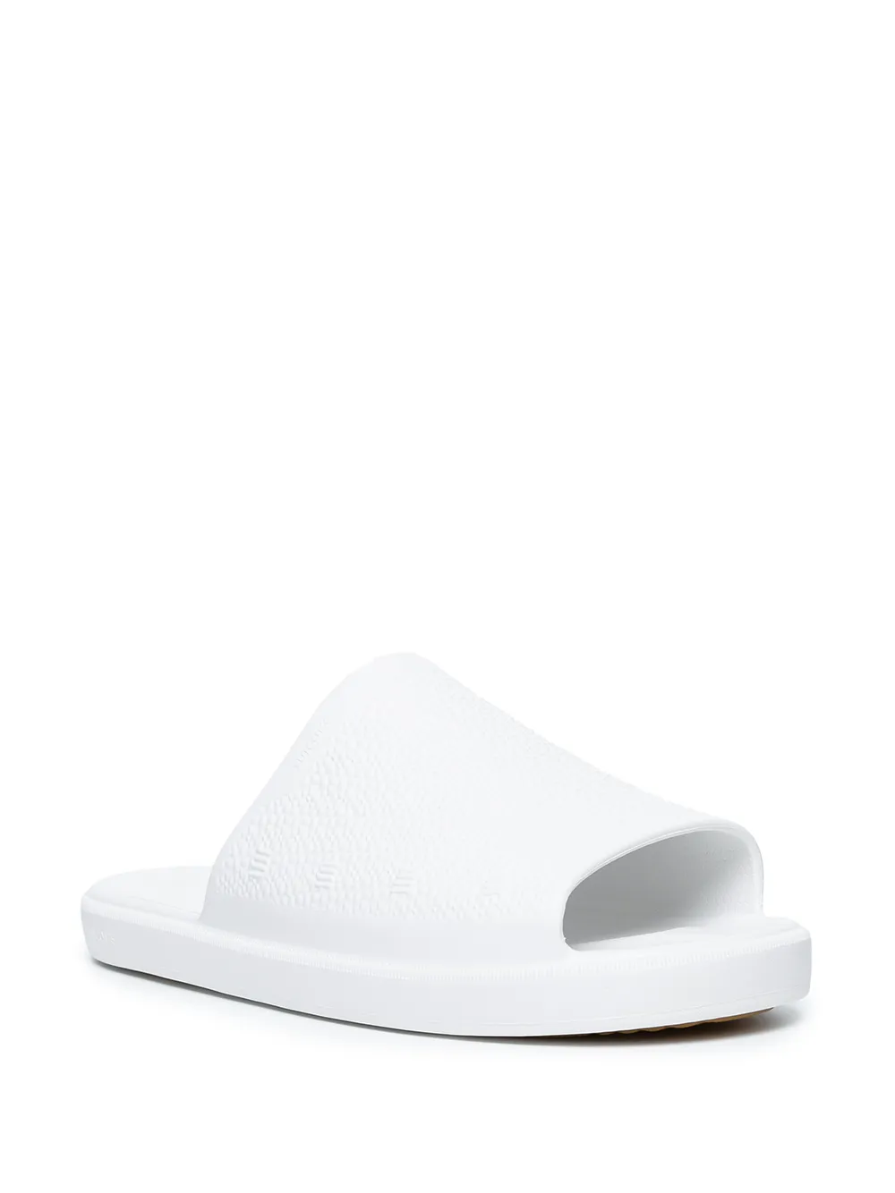 Bright white rubber Subim textured slip-on slides from SUICOKE featuring open toe, slip-on style and flat rubber sole. When buying this unisex item, keep in mind that it is graded in standard men’s sizing..