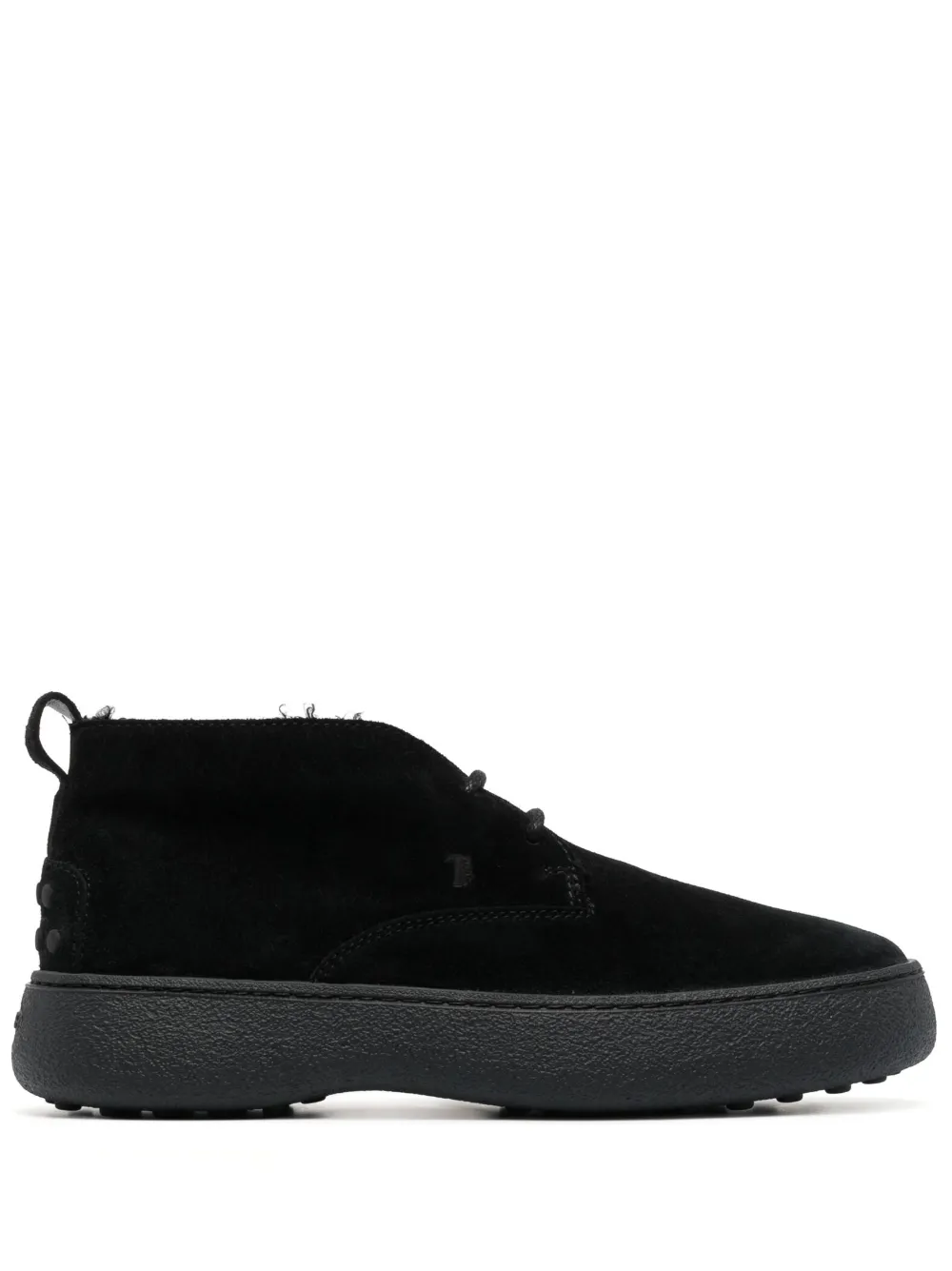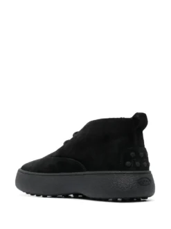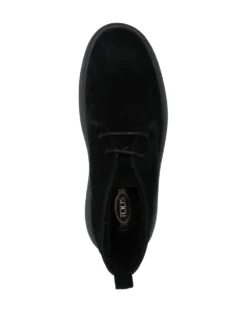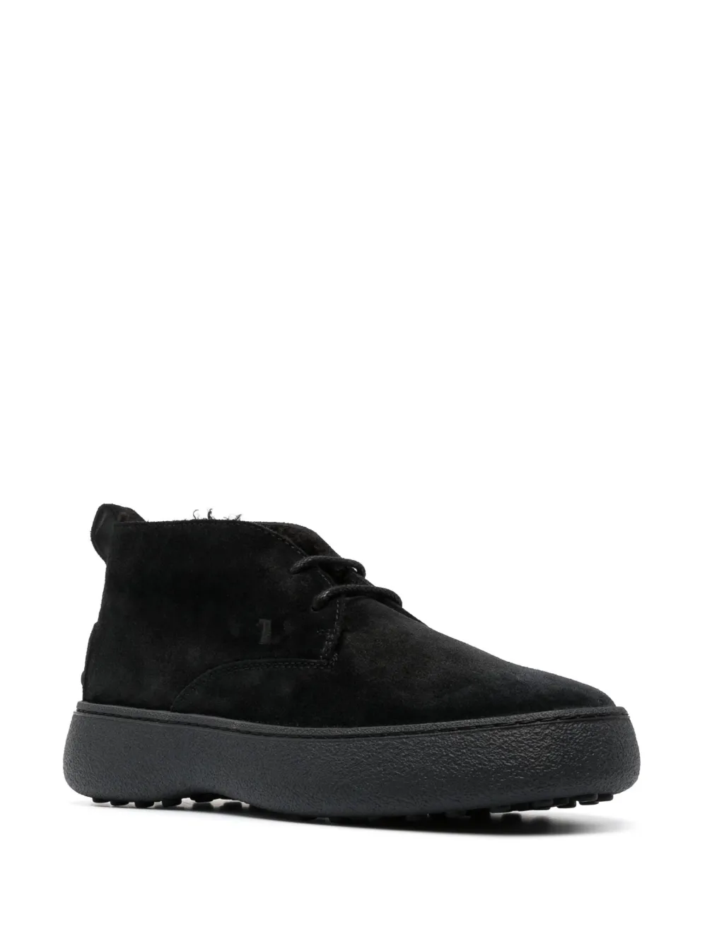Characterized by the chunky rubber sole these boots from Tod’s arrive in a black suede construction. Featuring the iconic rubber pebbles on the bottom and heel, they are enhanced by Tod’s monogram stamped on the front.