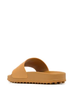 Brown logo-embossed pool sliders from TOD’S featuring embossed logo to the front, open toe, moulded footbed, branded insole and flat rubber sole.
