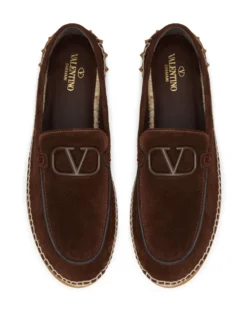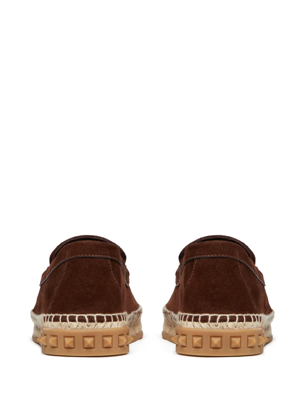 Valentino Garavani’s renowned VLogo Signature was first seen in 1968 and has become a true icon of the Italian fashion house since then. Decorating these fondant brown Leisure Flows espadrilles, the motif is imagined in a tonal hue for a polished finish.