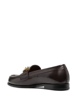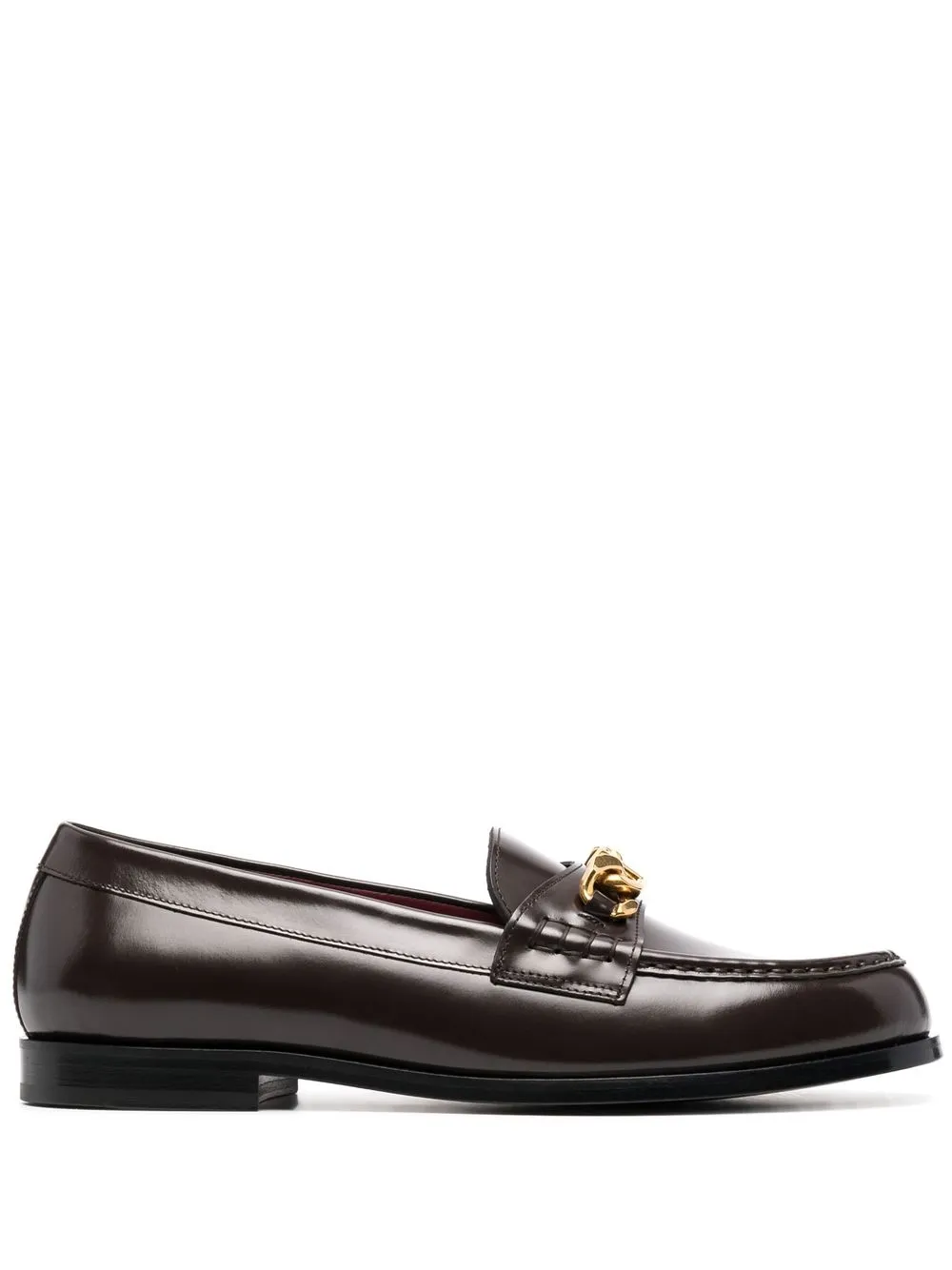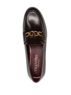 Decorated with a gold-tone chain-link VLogo to its front, these leather loafers by Valentino Garavani showcase the brand’s timeless Italian classicism.